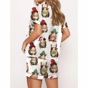 Christmas Festive Dachshund Satin Pajama Set For Women
