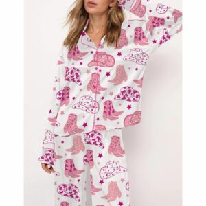 Cowboy Boot And Hat Satin Pajama Set For Women