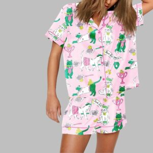 Funny Flamingo Pickleball Satin Pajama Set For Women