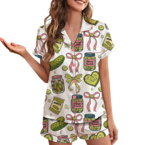 Women’s Pickle Print Satin Pajamas Set